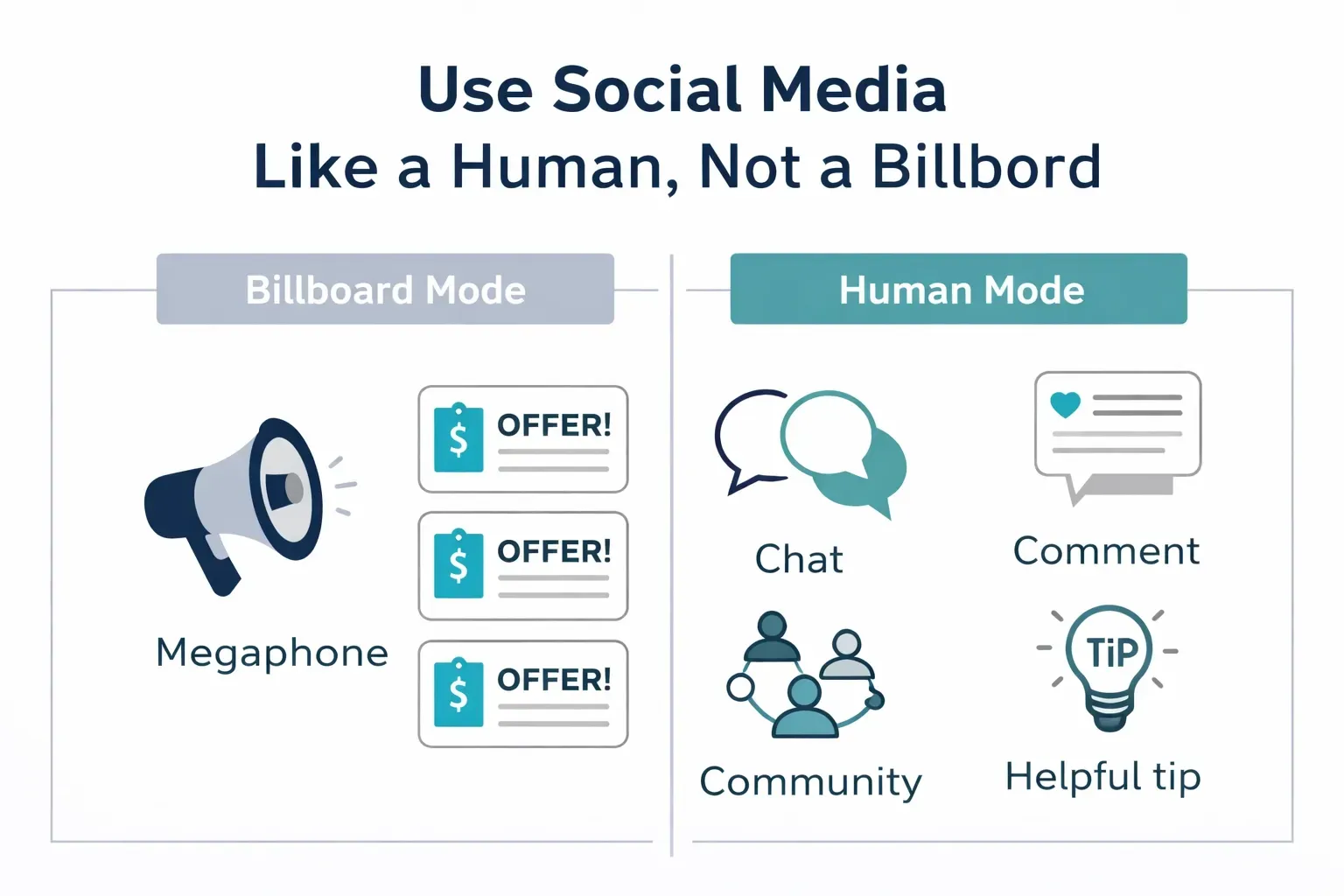 You know what doesn't work on social media? Posting "SPECIAL OFFER THIS WEEK ONLY" three times a day.